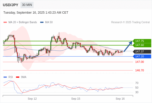 交易策略: 在 147.20 之上,看涨,目标价位为 147.60 ,然后为 147.75 。