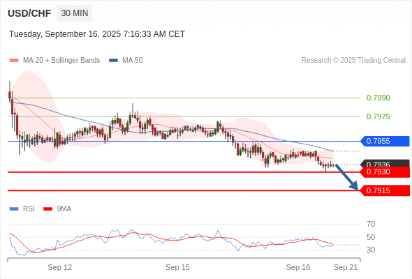 在 0.7955 之下,看跌,目标价位为 0.7930 ,然后为 0.7915 。