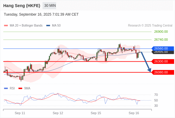 交易策略: 在 26560.00 之下,看跌,目标价位为 26300.00 ,然后为 26080.00 。