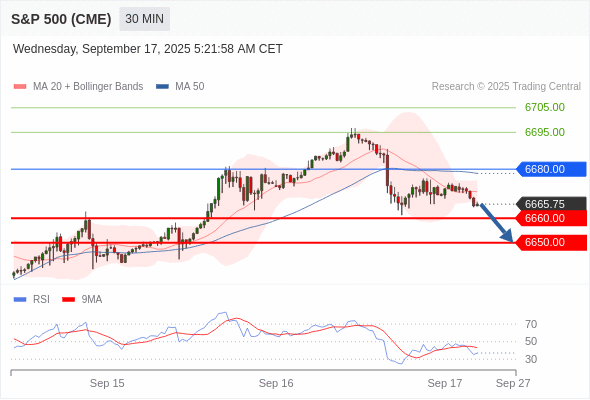 在 6680.00 之下,看跌,目标价位为 6660.00 ,然后为 6650.00 。
