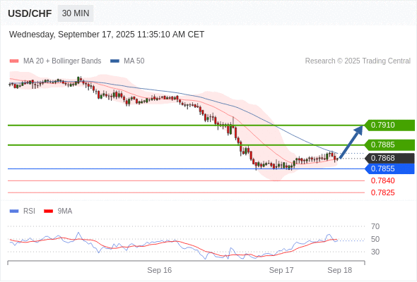 在 0.7855 之上,看涨,目标价位为 0.7885 ,然后为 0.7910 。