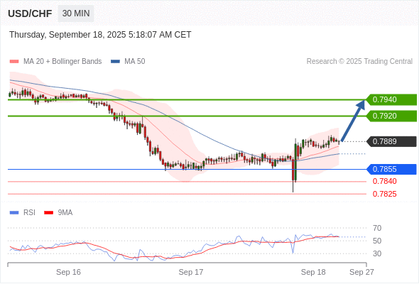 在 0.7855 之上,看涨,目标价位为 0.7920 ,然后为 0.7940 。