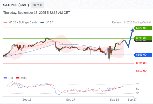 在 6653.00 之上,看涨,目标价位为 6695.00 ,然后为 6721.00 。