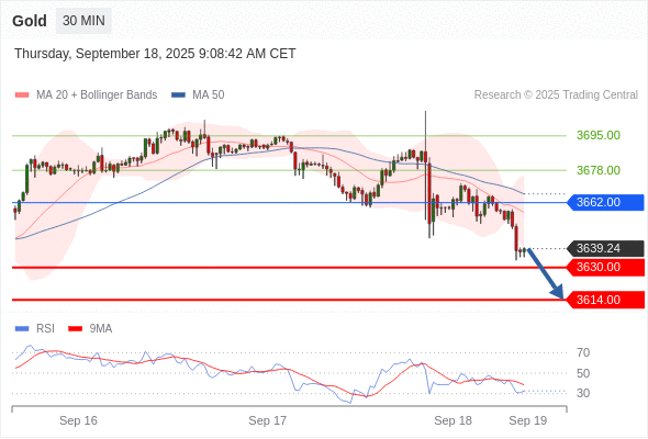 在 3662.00 之下,看跌,目标价位为 3630.00 ,然后为 3614.00 。