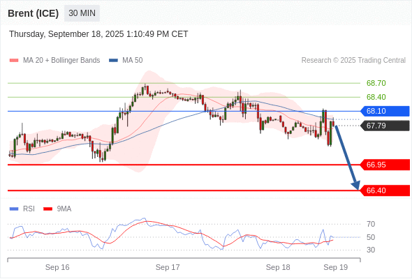 交易策略: 在 68.10 之下,看跌,目标价位为 66.95 ,然后为 66.40 。