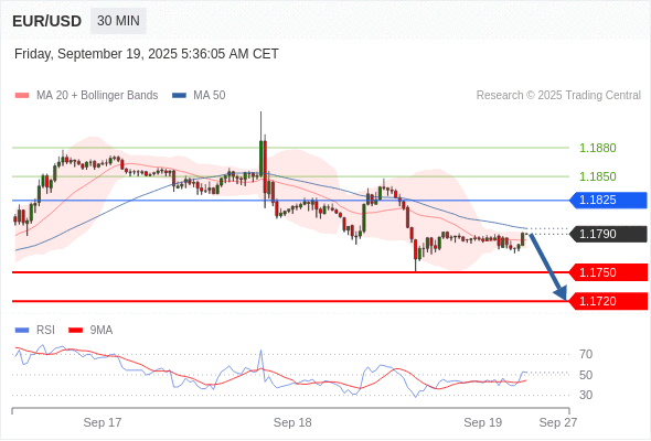 欧元/美元 当日内: 短期关键阻力位在1.1825。