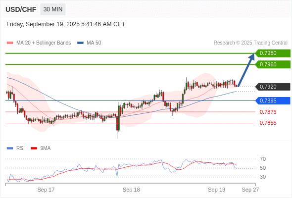 在 0.7895 之上,看涨,目标价位为 0.7960 ,然后为 0.7980 。