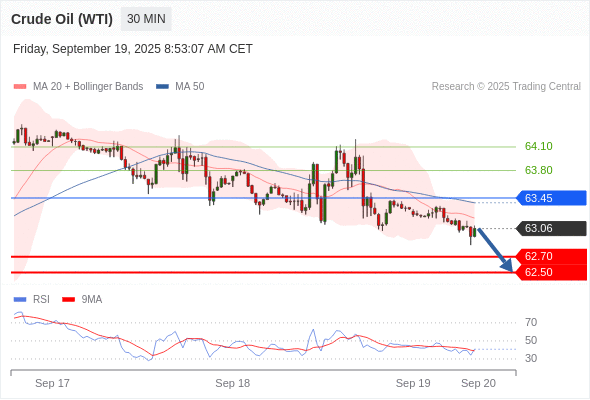 在 63.45 之下,看跌,目标价位为 62.70 ,然后为 62.50 。