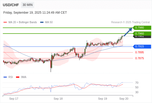 在 0.7915 之上,看涨,目标价位为 0.7960 ,然后为 0.7980 。