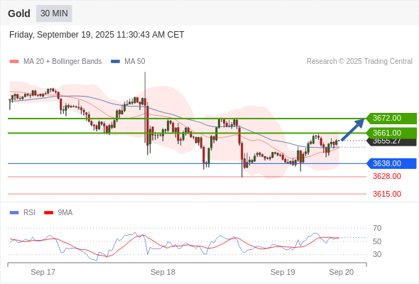 在 3638.00 之上,看涨,目标价位为 3661.00 ,然后为 3672.00 。