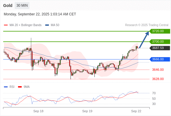 在 3666.00 之上,看涨,目标价位为 3700.00 ,然后为 3720.00 。
