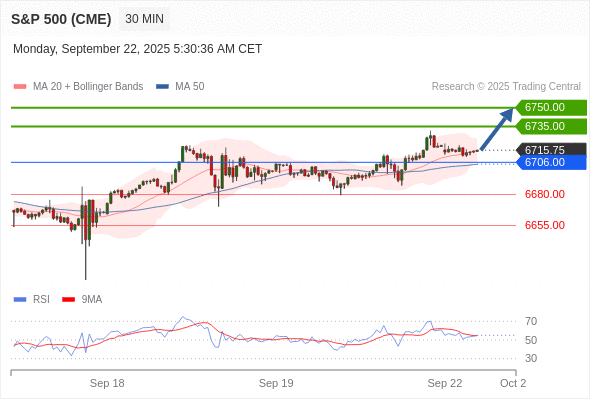 在 6706.00 之上,看涨,目标价位为 6735.00 ,然后为 6750.00 。