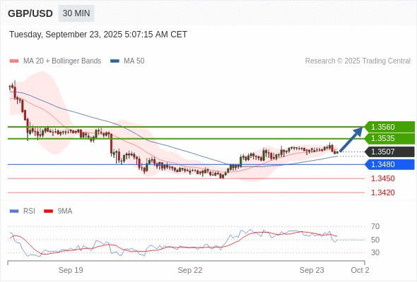 在 1.3480 之上,看涨,目标价位为 1.3535 ,然后为 1.3560 。
