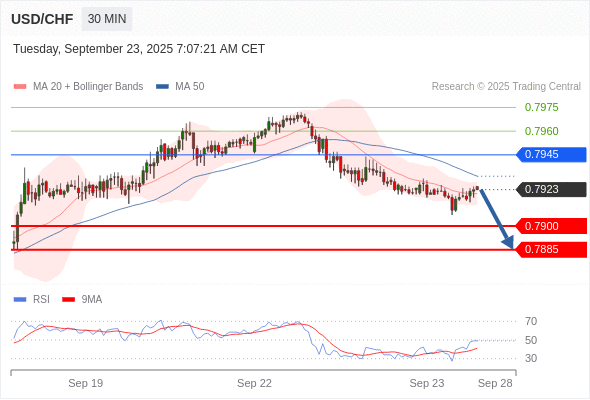 在 0.7945 之下,看跌,目标价位为 0.7900 ,然后为 0.7885 。
