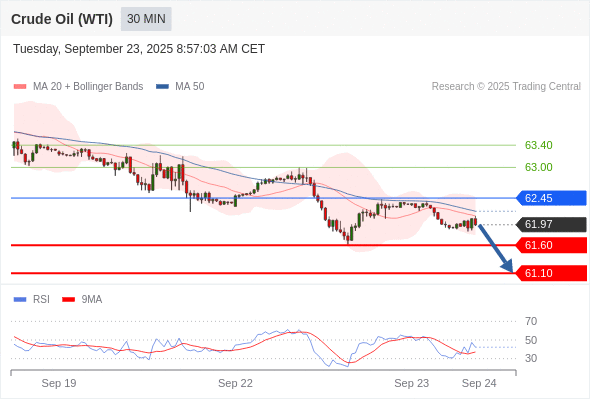 在 62.45 之下,看跌,目标价位为 61.60 ,然后为 61.10 。