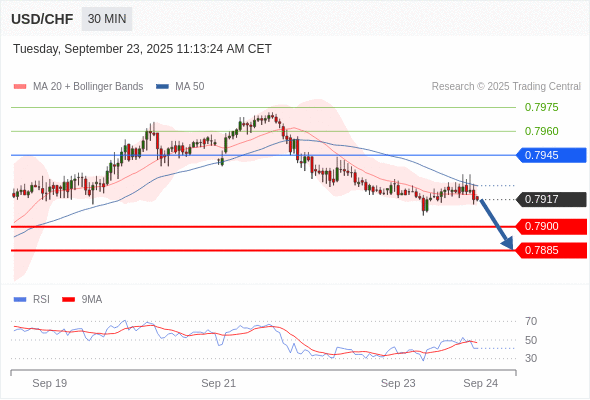 在 0.7945 之下,看跌,目标价位为 0.7900 ,然后为 0.7885 。