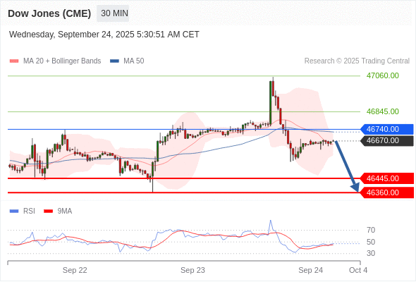 在 46740.00 之下,看跌,目标价位为 46445.00 ,然后为 46360.00 。