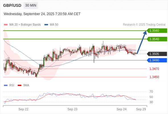 在 1.3490 之上,看涨,目标价位为 1.3540 ,然后为 1.3560 。