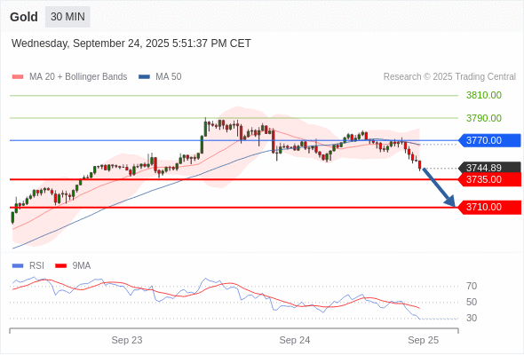 在 3770.00 之下,看跌,目标价位为 3735.00 ,然后为 3710.00 。