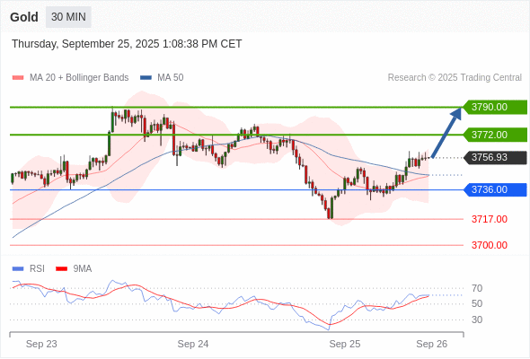 在 3736.00 之上,看涨,目标价位为 3772.00 ,然后为 3790.00 。