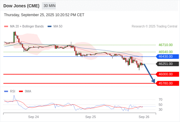 在 46430.00 之下,看跌,目标价位为 46000.00 ,然后为 45780.00 。