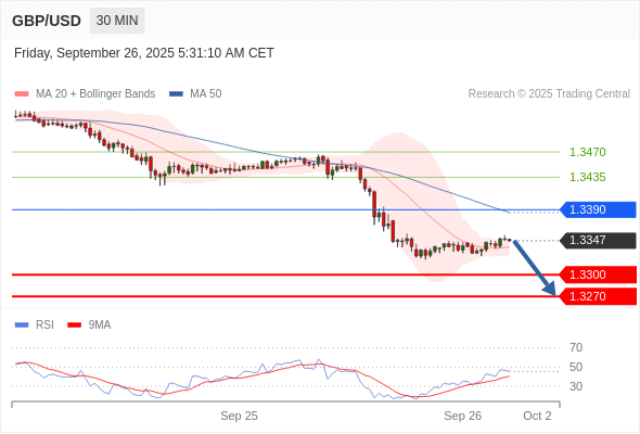 英镑/美元 当日内: 短期关键阻力位在1.3390。