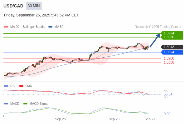 首页 > > 美元/加元 当日内 : 看涨,当 1.3924 为支撑位,目标定在1.3994。