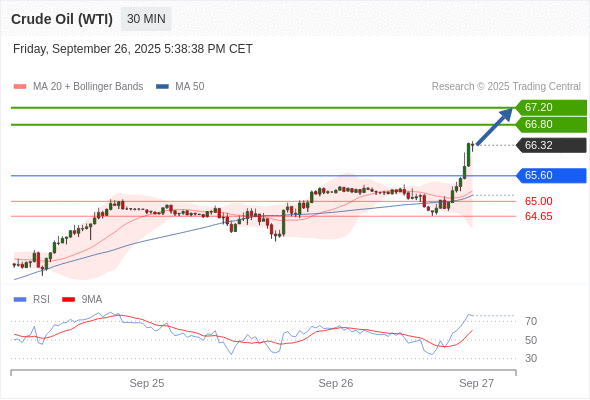 在 65.60 之上,看涨,目标价位为 66.80 ,然后为 67.20 。
