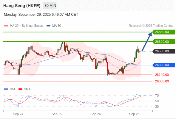在 26300.00 之上,看涨,目标价位为 26690.00 ,然后为 26850.00 。