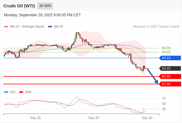 在 64.15 之下,看跌,目标价位为 62.55 ,然后为 61.90 。