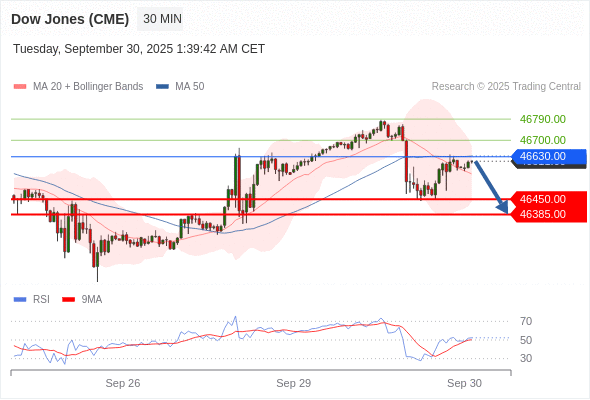 交易策略: 在 46630.00 之下,看跌,目标价位为 46450.00 ,然后为 46385.00 。