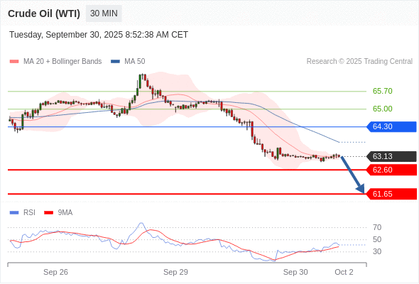 在 64.30 之下,看跌,目标价位为 62.60 ,然后为 61.65 。