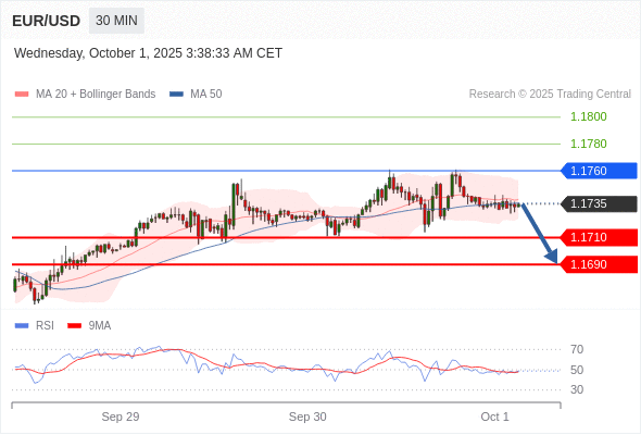在 1.1760 之下,看跌,目标价位为 1.1710 ,然后为 1.1690 。