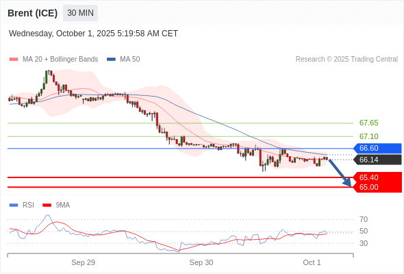 在 66.60 之下,看跌,目标价位为 65.40 ,然后为 65.00 。