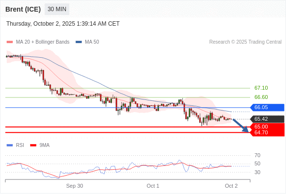 在 66.05 之下,看跌,目标价位为 65.00 ,然后为 64.70 。
