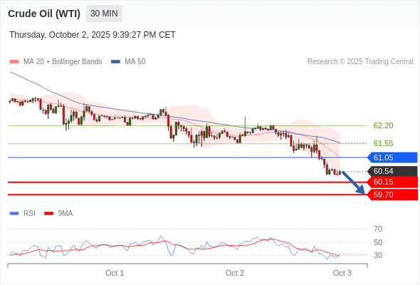 在 61.05 之下,看跌,目标价位为 60.15 ,然后为 59.70 。