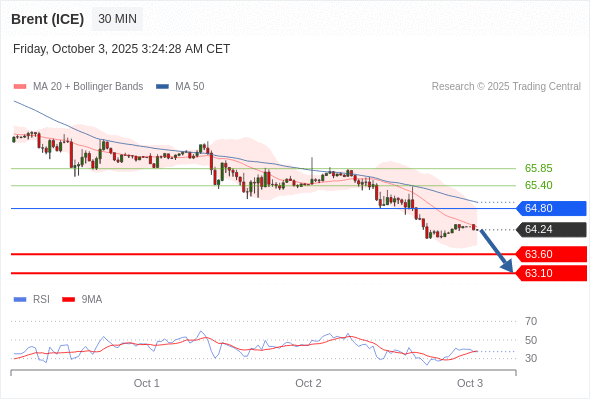 在 64.80 之下,看跌,目标价位为 63.60 ,然后为 63.10 。