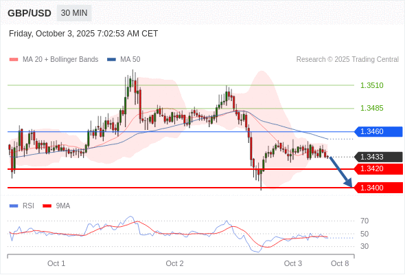 在 1.3460 之下,看跌,目标价位为 1.3420 ,然后为 1.3400 。