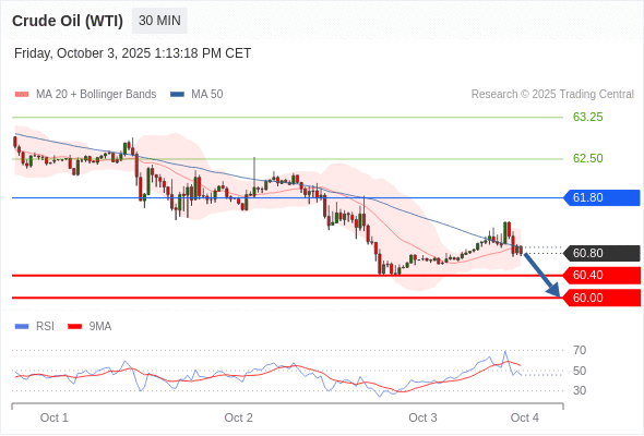 在 61.80 之下,看跌,目标价位为 60.40 ,然后为 60.00 。