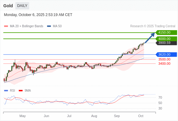 在 3620.00 之上,看涨,目标价位为 4000.00 ,然后为 4150.00 。