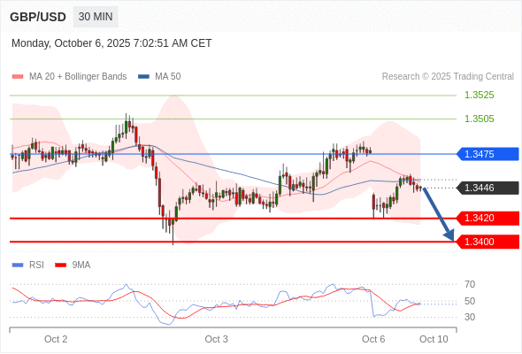 在 1.3475 之下,看跌,目标价位为 1.3420 ,然后为 1.3400 。