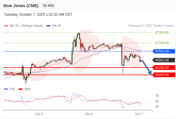 交易策略: 在 47035.00 之下,看跌,目标价位为 46790.00 ,然后为 46680.00 。
