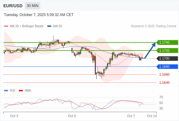 在 1.1680 之上,看涨,目标价位为 1.1720 ,然后为 1.1740 。
