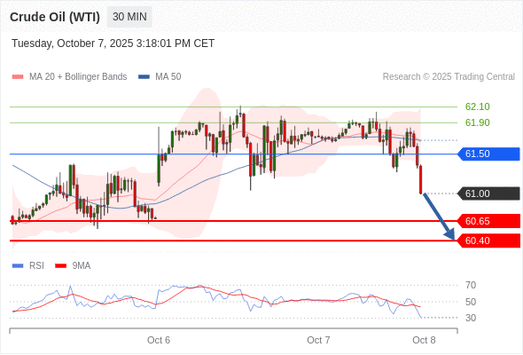 在 61.50 之下,看跌,目标价位为 60.65 ,然后为 60.40 。