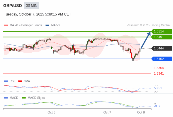 替代方案: 在1.3402以下,期待1.3364和1.3341。