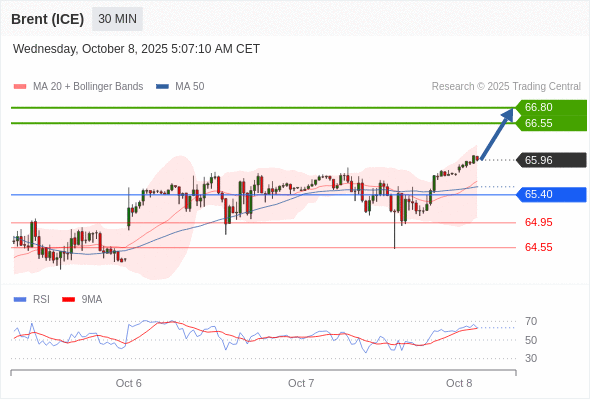在 65.40 之上,看涨,目标价位为 66.55 ,然后为 66.80 。