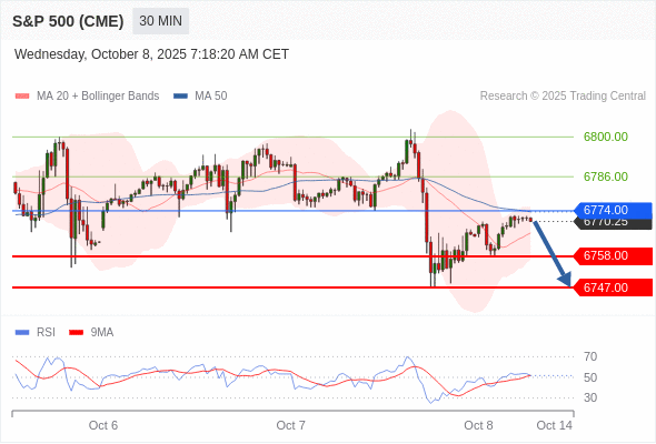 在 6774.00 之下,看跌,目标价位为 6758.00 ,然后为 6747.00 。