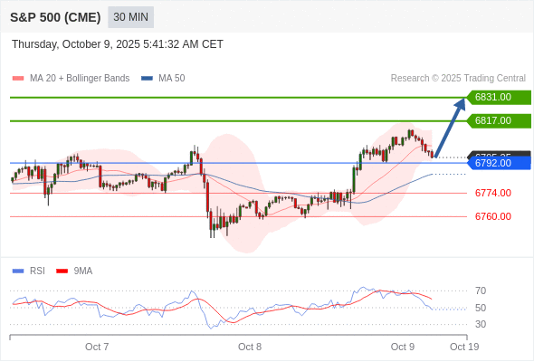 在 6792.00 之上,看涨,目标价位为 6817.00 ,然后为 6831.00 。