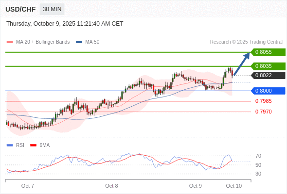 交易策略: 在 0.8000 之上,看涨,目标价位为 0.8025 ,然后为 0.8035 。