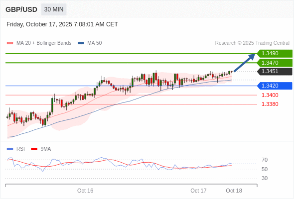 在 1.3420 之上,看涨,目标价位为 1.3470 ,然后为 1.3490 。